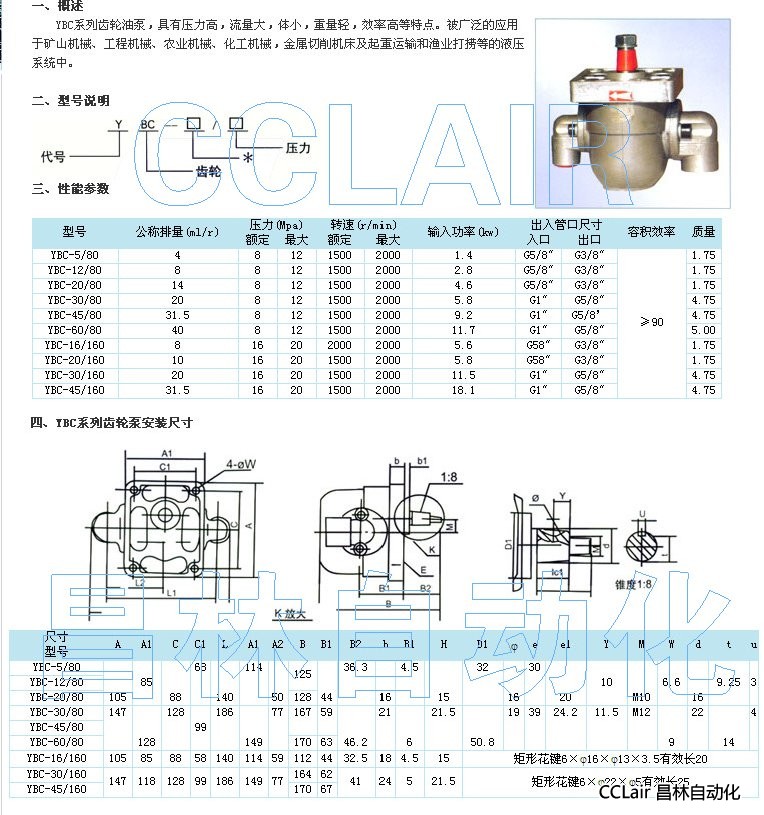 詳細信息 YBC-5/80,YBC-12/80,YBC-20/80,YBC-30/80,YBC-45/80,YBC-16/160,YBC-20/160,齒輪油泵