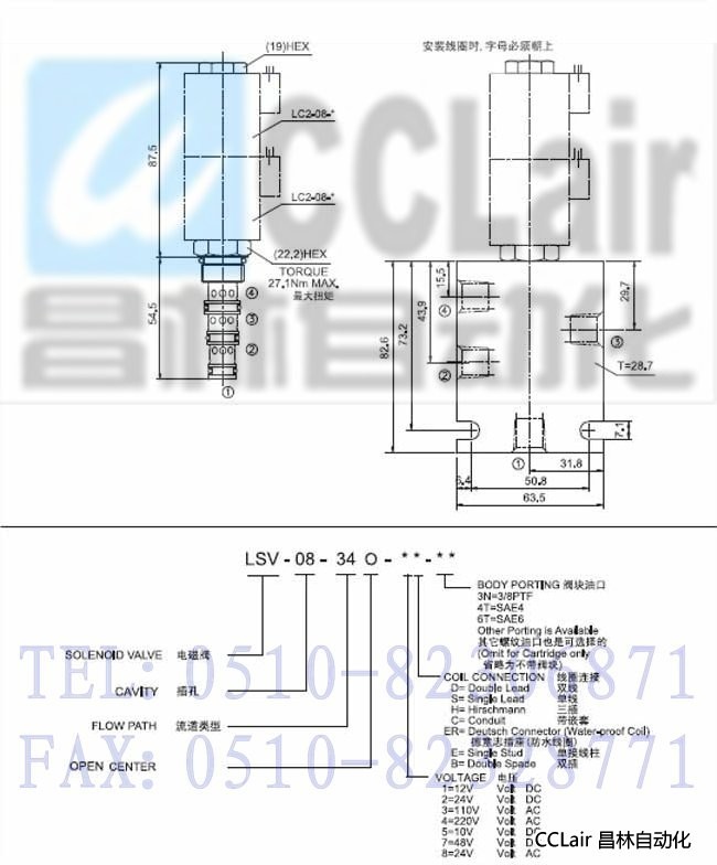 LSV-08-34O-5D,LSV-08-34O-5H,LSV-08-34O-5O,LSV-08-34O-5S,三位四通電磁閥,