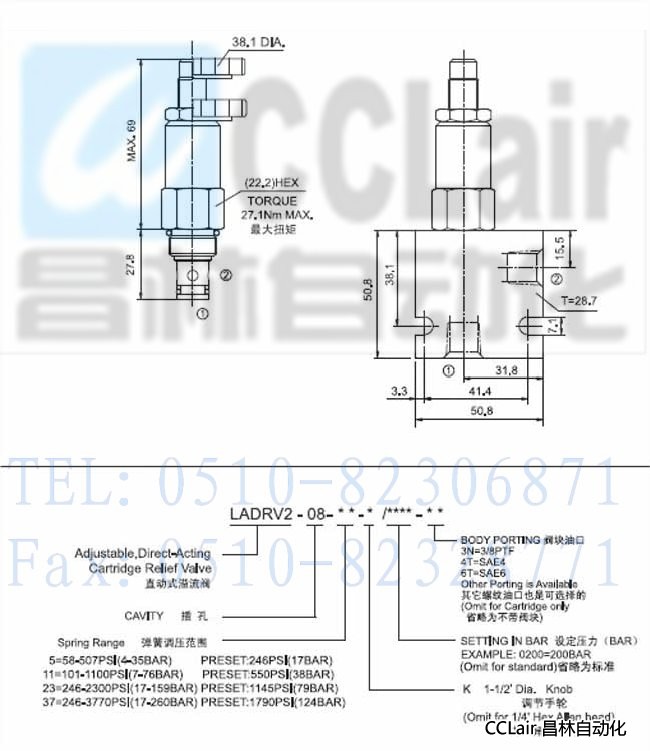 LADRV2-08-5-K-3N,LADRV2-08-5-K-4T,LADRV2-08-5-K-6T,直動式溢流閥