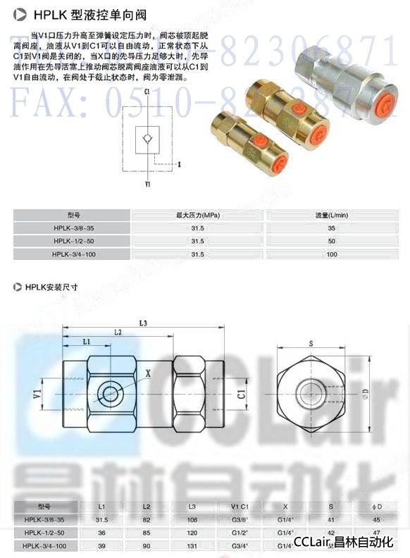 詳細(xì)信息 HPLK-3/8-38,HPLK-1/2-50,HPLK-3/4-100,液控單向閥