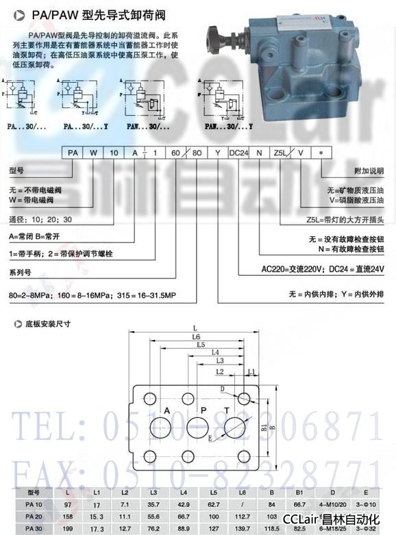 詳細(xì)信息 PA10,PA20,PA30,PAW10,PAW20,PAW30,先導(dǎo)式卸荷閥