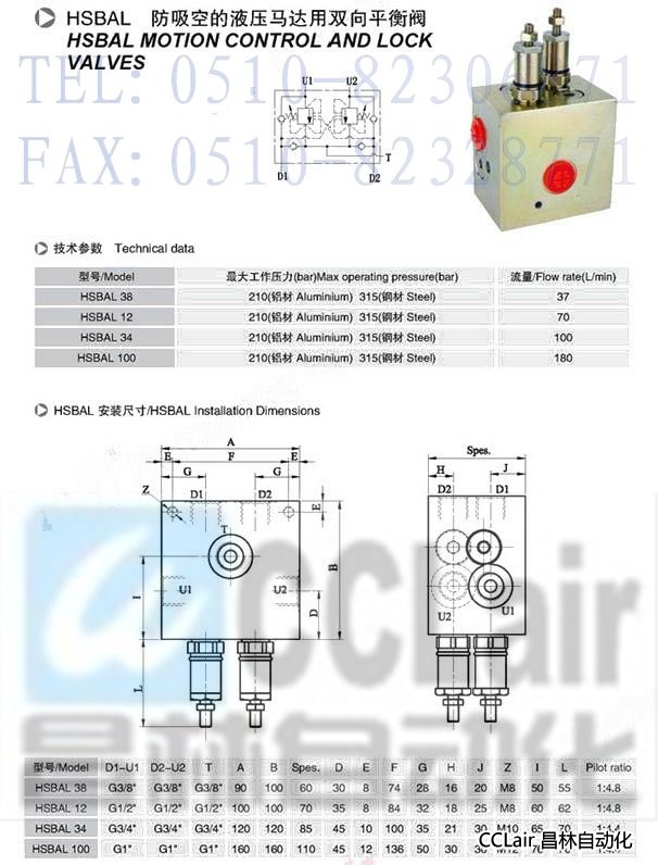 HSBAL 38,HSBAL 12,HSBAL 34,HSBAL 100,防吸空的液壓馬達(dá)用雙向平衡閥