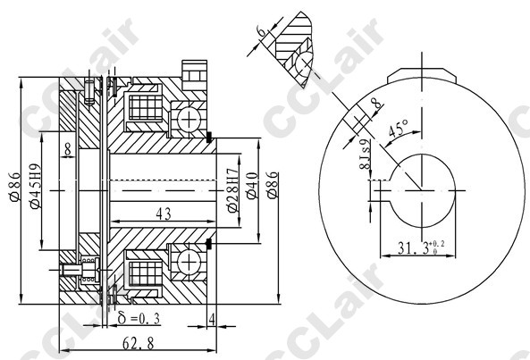 1、離合器可水平安裝也可垂直安裝,安裝在軸上的離合器應(yīng)保持主動軸與從動軸之間的同軸度不大于0.05mm并保證工作間隙δ值;