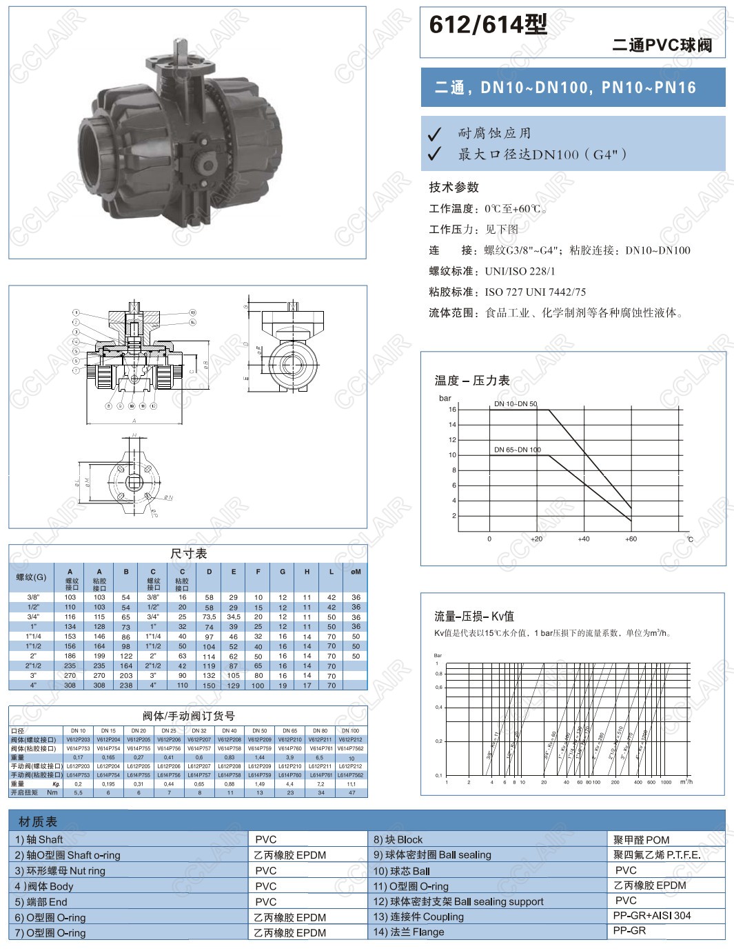 D612H003,D612H004,S612H003,S612H004,D614H083,S614H084,S614H092,612/614型二通PVC球閥