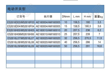 詳細信息 E52616D03,E52616D04,E52616H05,E52616H06,E52616L07,M52616L09,526型電動開關(guān)球閥OMAL