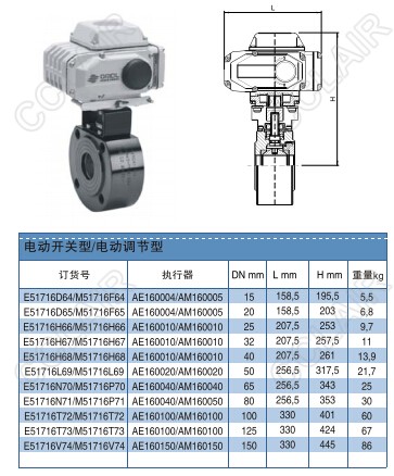 E51716D64,E51716D65,E51716H66,E51716H67,M51716V74,517型電動開關(guān)/電動調(diào)節(jié)球閥OMAL