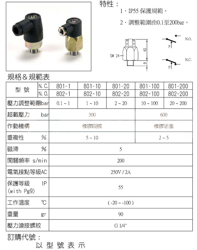 詳細(xì)信息 801-1,801-10,801-20,802-100,802-200,panix壓力開關(guān)