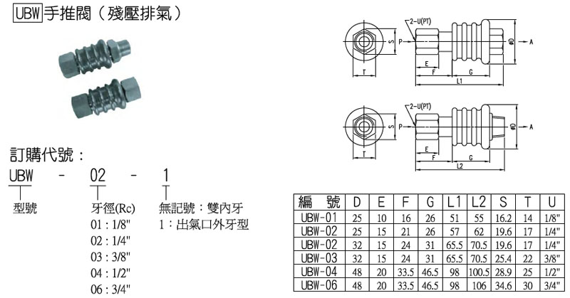 UBW-01,UBW-02,UBW-03,UBW-04,UBW-06,panix手推閥