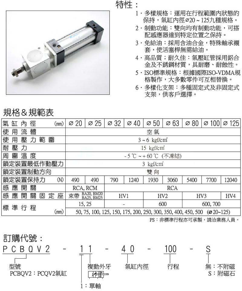 PCBQV2-11-20,PCBQV2-11-25,PCBQV2-11-32,PCBQV2-11-40,panix鎖定裝置