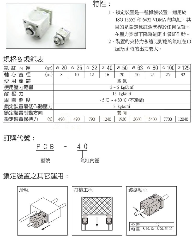 PCB-20,PCB-25,PCB-32,PCB-40,PCB-50,PCB-63,PCB-80,panix鎖定裝置
