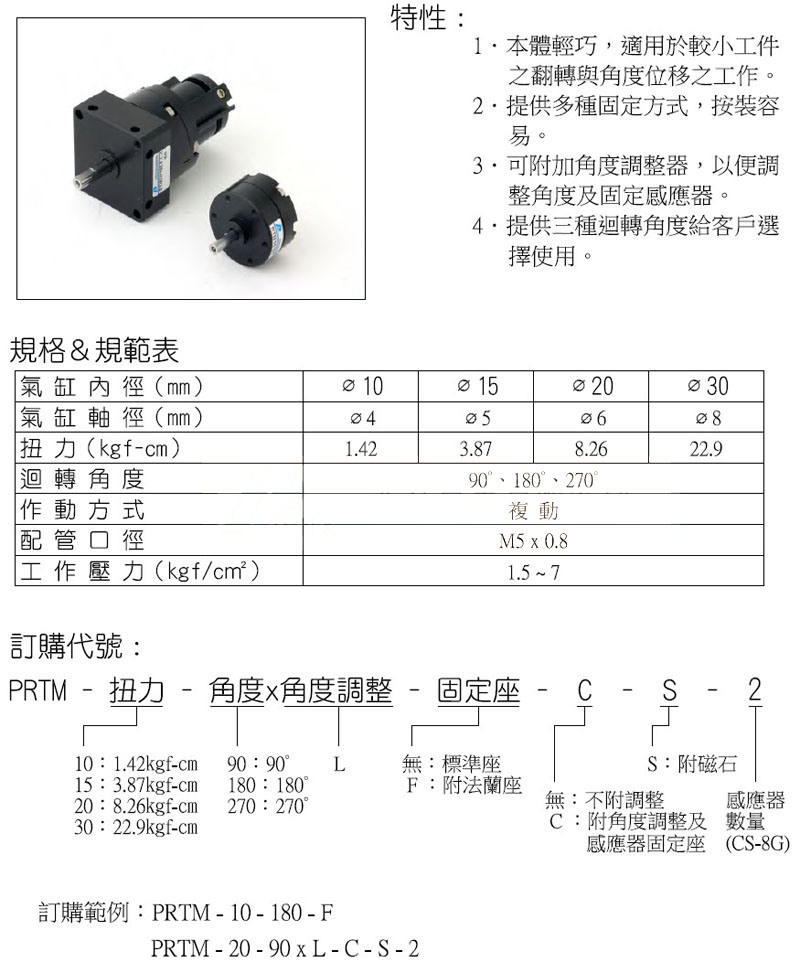 瀏覽次數(shù):841PRTM-10-90,PRTM-15-180,PRTM-20-270,PRTM-30-90,panix迷你型回轉(zhuǎn)氣缸 |