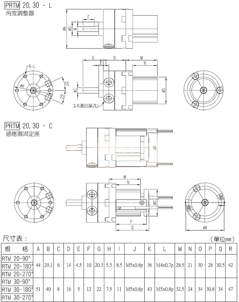 PRTM-10-90,PRTM-15-180,PRTM-20-270,PRTM-30-90,panix迷你型回轉(zhuǎn)氣缸 |