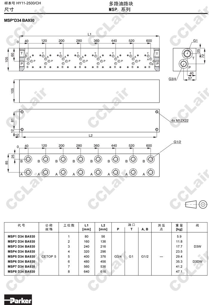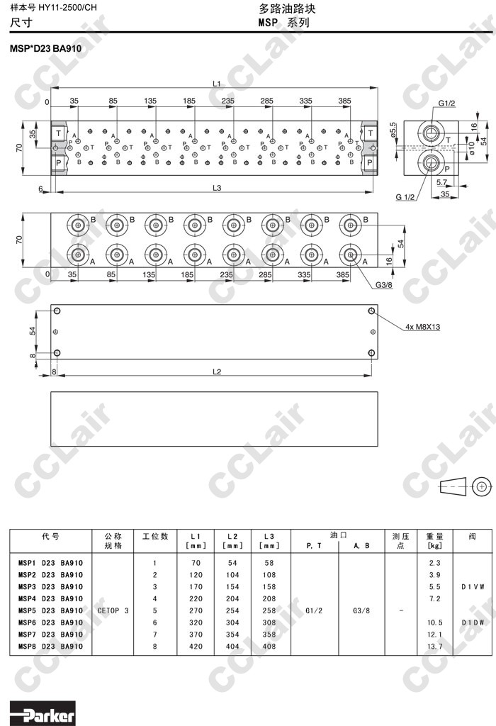 MSP1D,MSP2D,MSP3D,MSP4D,MSP5D,MSP6D,MSP7D,MSP8D,MSP1D23B910,MSP1D34B930,Parker多路油路塊