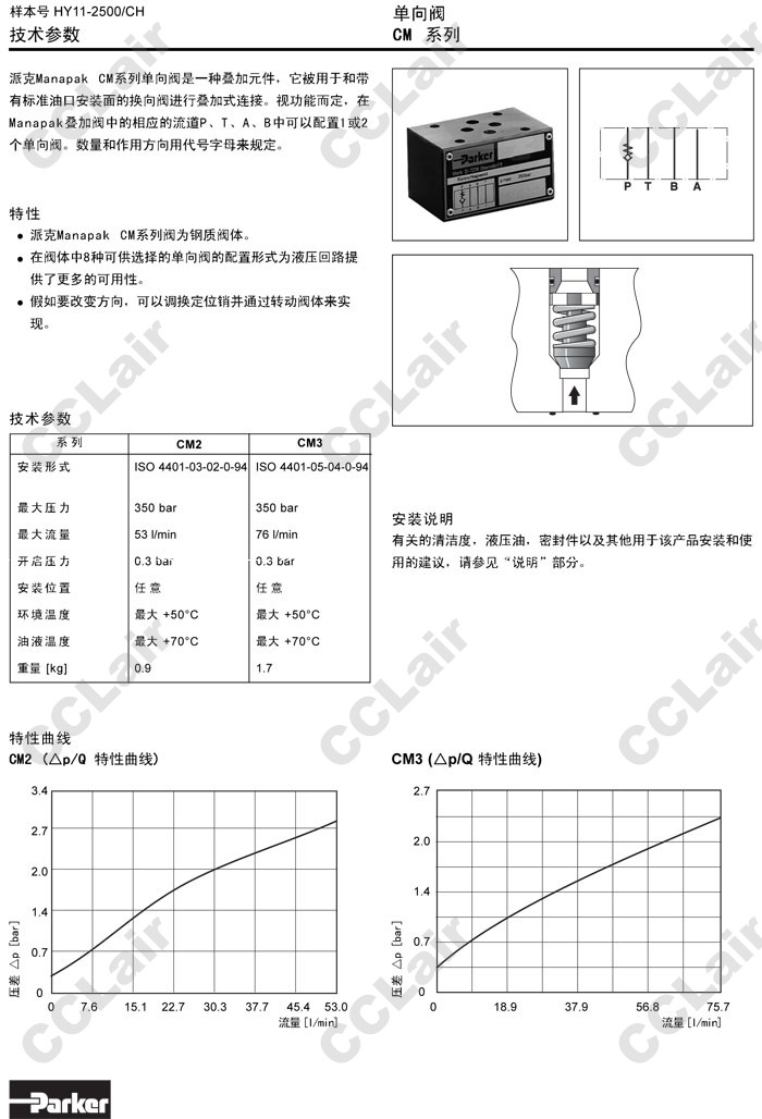 詳細信息 CM2AAV,CM2BBV,CM2DDV,CM2PPV,CM2TTV,CM2AAFV,CM2BBFV,CM2DDFV,CM2PTV,Parker單向閥