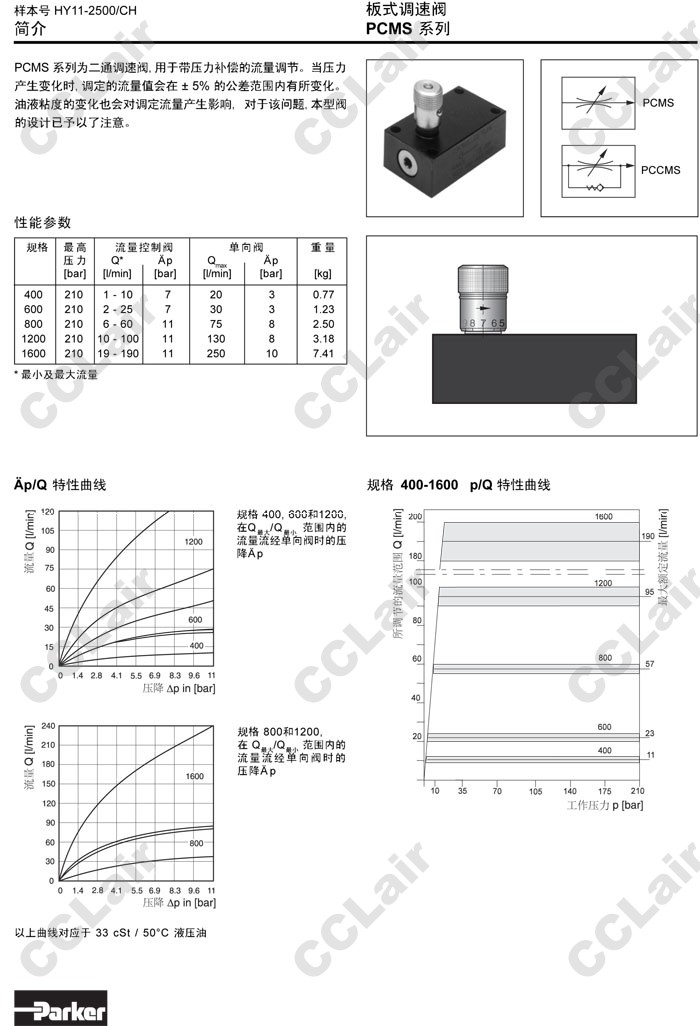 PCCMS400S,PCCMS600S,PCCMS800S,PCCMS1200S,PCCMS1600S,Parker板式調(diào)速閥