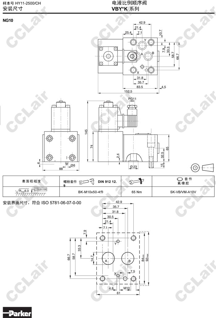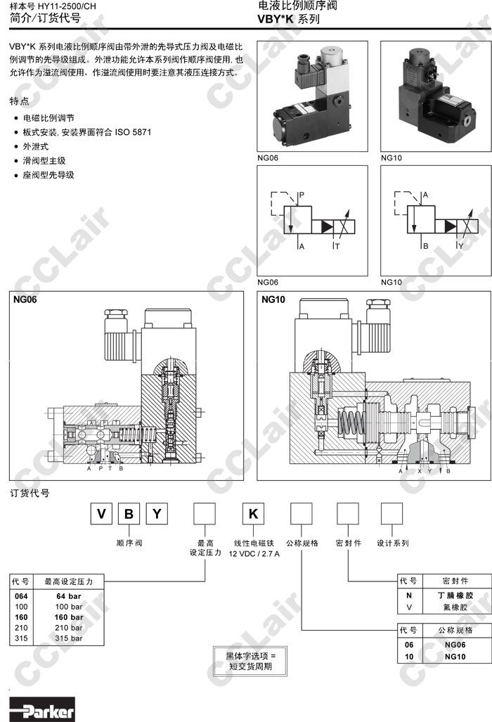 詳細(xì)信息 VBY064K06N,VBY100K06N,VBY160K06N,VBY210K06N,VBY315K06N,VBY064K10N,VBY100K10N,Parker電液比例順序閥