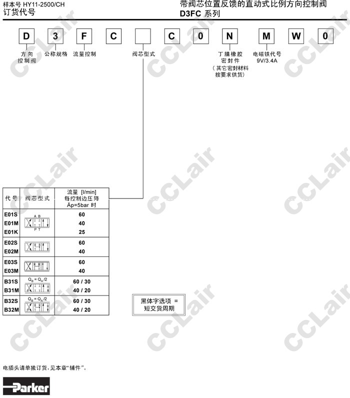 詳細(xì)信息 D3FCE01,D3FCE02,D3FCE03,D3FCB31,D3FCB32,D3FCE01SC0NMW0,D3FCE02SC0NMW0,Parker直動(dòng)式比例方向控制閥
