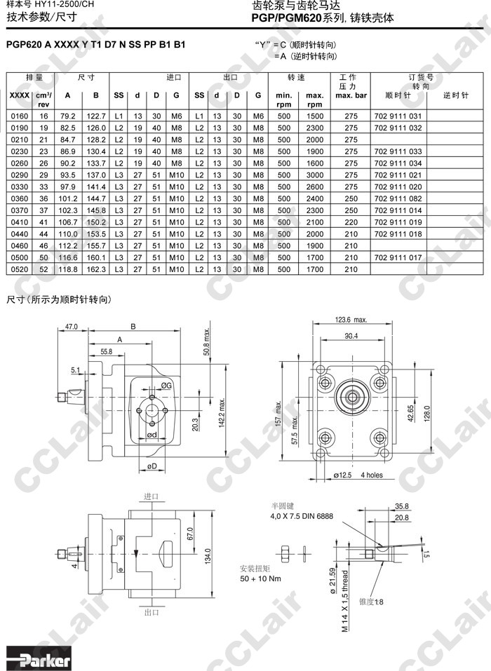 PGM620B0520AC1H2,PGM620B0520AC1H3,PGM620B0520AD2H2,Parker PGM620B0520AD2H3,PGM620B0520AT1D7,