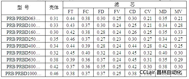 、額定流量下的清潔濾芯壓降(單位:1×105Pa 介質(zhì)參數(shù):