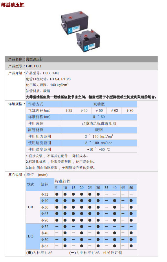 HJB-32*5,HJB-40*5,HJB-50*5,HJB-63*5,HJB-80*5,HJQ-32*10,HJQ-40*10,HJQ-50*10,HJQ-63*10,POSU薄型油壓缸