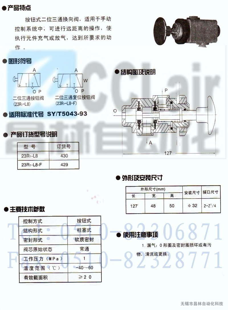 產(chǎn)品: 瀏覽次數(shù):152723R1-L8,23R1-L8-F,按鈕閥