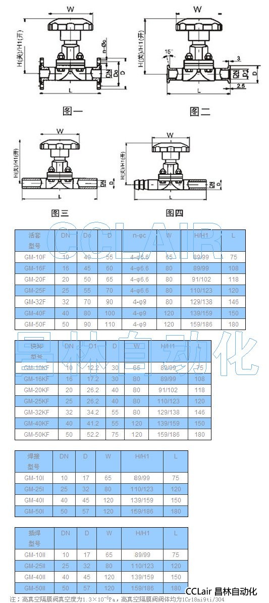 GM-10II,GM-25II,GM-40II,GM-50II,高真空隔膜閥