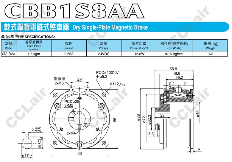 CBB1S8AA,電磁剎車(chē)器,CCLair