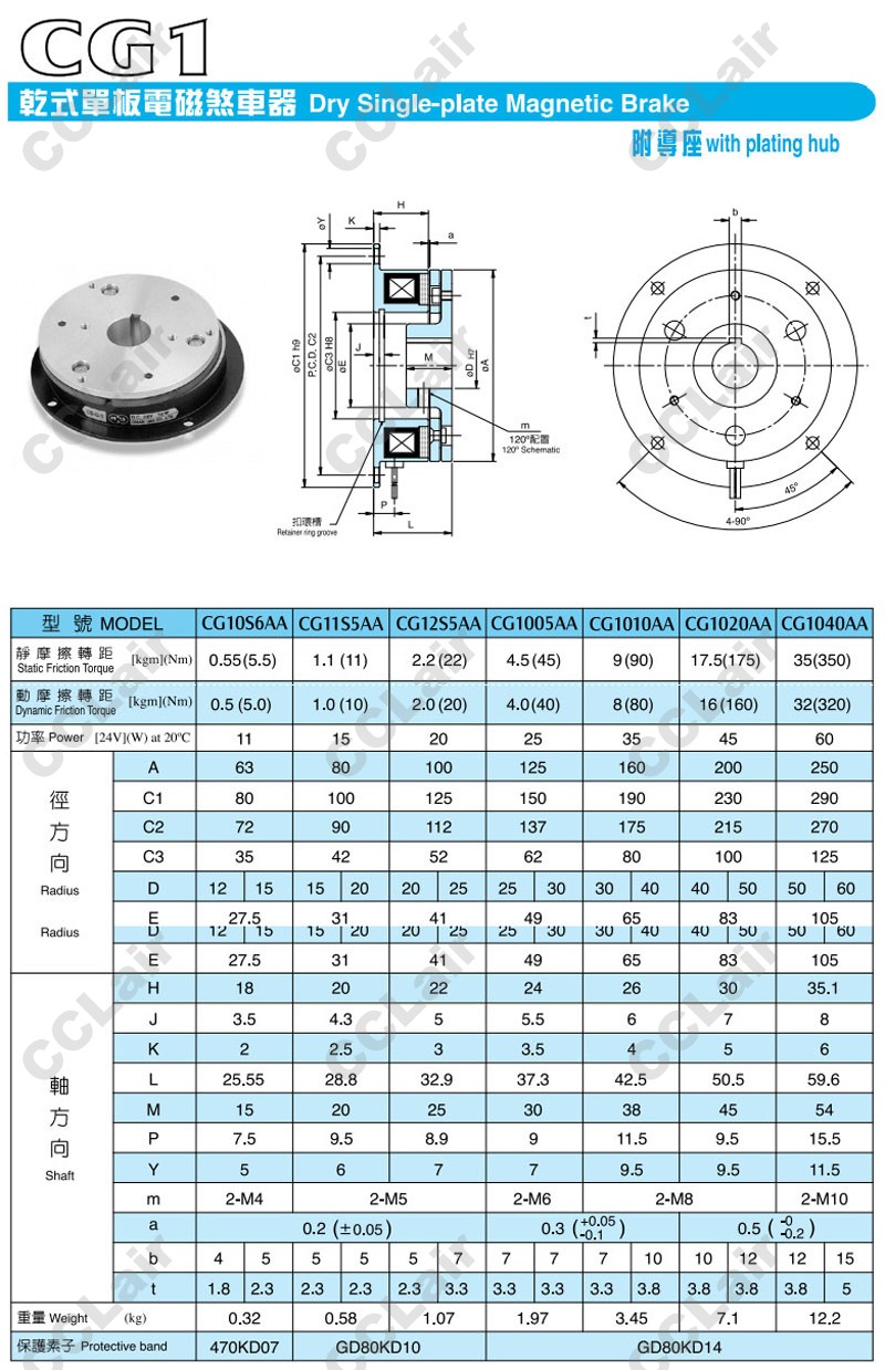 詳細(xì)信息 CG10S6AA,CG11S5AA,CG12S5AA,CG1005AA,CG1010AA,CG1020AA,CG1040AA,電磁剎車器,CCLair