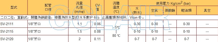 詳細(xì)信息 SV-2111,SV-2115,SV-2120,常閉電磁閥