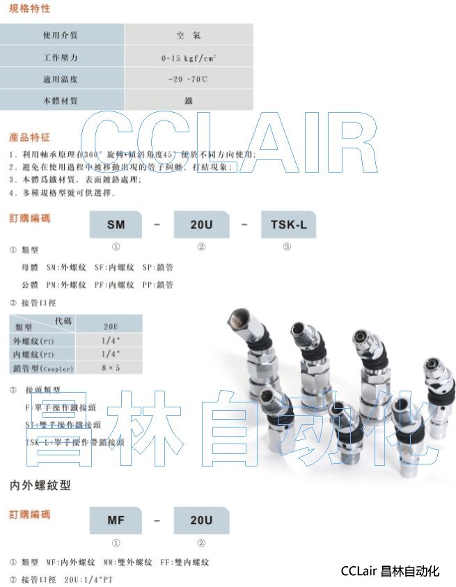 詳細信息 SM-20U,SF-20U,SP-20U,PM-20U,PF-20U,PP-20U,360°萬向旋轉(zhuǎn)接頭