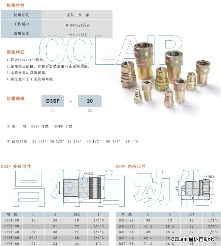 D3SF-20,D3SF-30,D3SF-40,D3SF-60,D3SF-80,D3PF-20,D3PF-30,D3PF-40,快換接頭