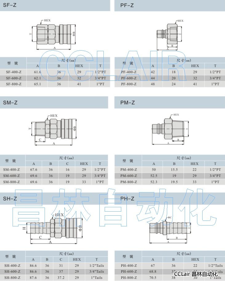 SF-400,SF-600,SF-800,PF-400,PF-600,SM-600,PM-800,SH-400,PH-400,大流量快換接頭
