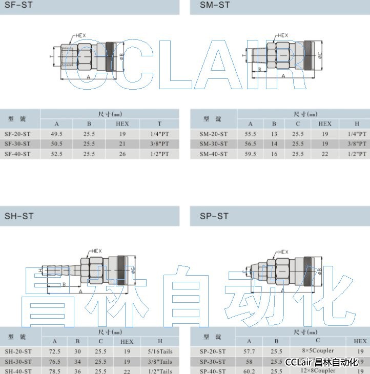 SF-20-ST,SF-30-ST,SM-20-ST,SH-20-ST,SH-30-ST,SP-20-ST,SP-30-ST,雙手操作快換接頭