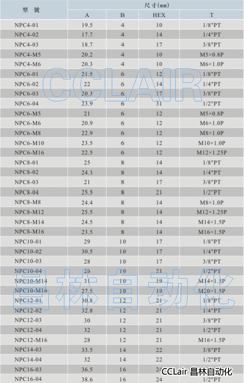 NPC4-01,NPC6-0M5,NPC8-M6,NPC10-02,NPC12-04,NPC14-03,NPC16-03,接頭