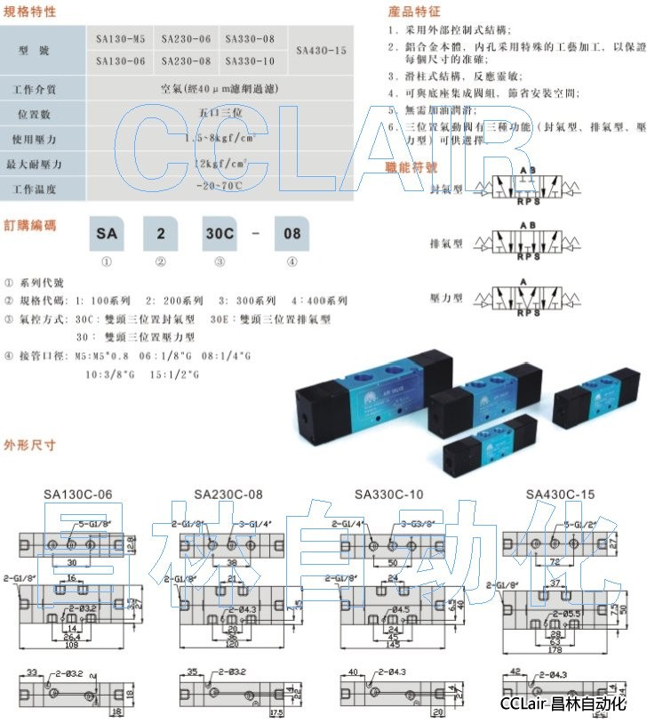 SA130E-06,SA230E-08,SA330E-10,SA130E-M5,SA230E-M5,SA330E-M5,雙頭三位氣動閥