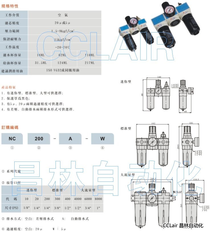 詳細(xì)信息 NC10-A-W,NC20-A-W,NC200-A-W,NC300-A-W,NC400-A-W,NC4000-A-W,空氣調(diào)理組合