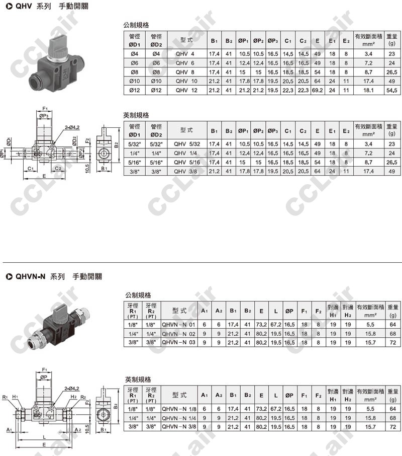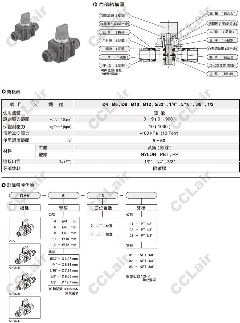 氣立可(chelic),QHV4,QHV6,QHV8,QHV10,QHV12,QHVN-N4,QHVN-R4,QHVN-L4,QHVN-R6,QHVN-N6,QHVN-L6,