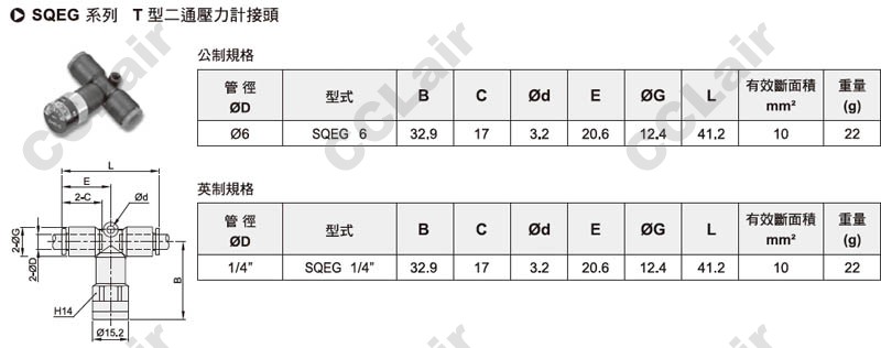 詳細(xì)信息 氣立可(chelic),SQEG6,SQEG1/4,二通壓力計(jì)接頭