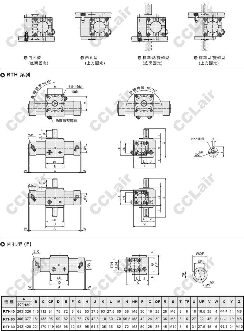 氣立可(chelic),RTH63-90,RTH63-180,RTH80-90,RTH80-180,RTH40-90-SB2,RTH40-180-F-SB2,回轉(zhuǎn)氣缸
