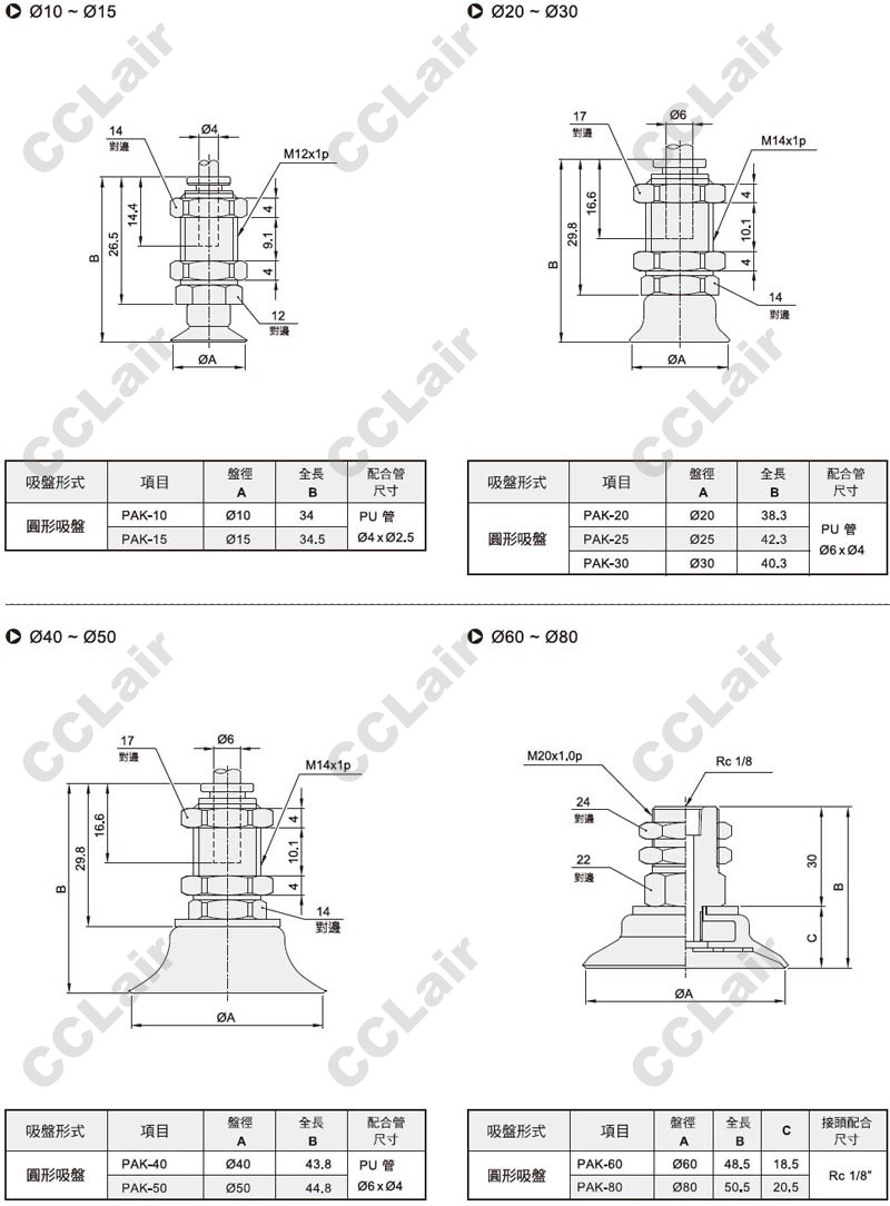 氣立可(chelic),PAK-10,PAK-15,PAK-20,PAK-25,PAK-30,PAK-40,PAK-50,PAK-60,PAK-80,真空吸盤