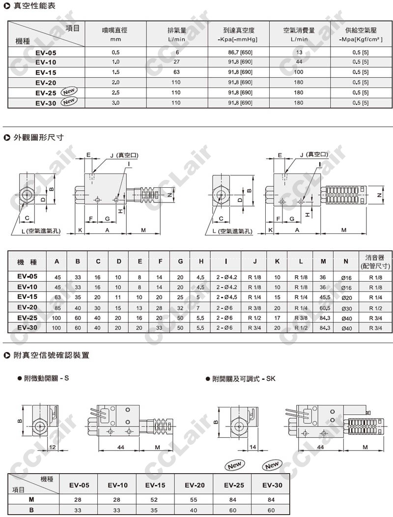 氣立可(chelic),EV-05,EV-10,EV-15,EV-20,EV-25,EV-30,EV-05-S-K,EV-05-K,EV-10-K,真空發(fā)生器