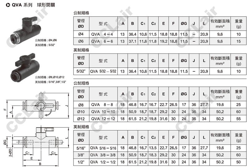 氣立可(chelic),QVA6-6,QVA8,QVA10,QVA12,QVA4-4,QVA5/32,QVA5/16,QVA3/8,QVA1/2,