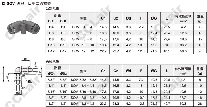 氣立可(chelic),SQV4-4,SQV6-6,SQV8-8,SQV10,SQV12,SQV5/32,SQV1/4,SQV5/16,SQV3/8,SQV1/2,