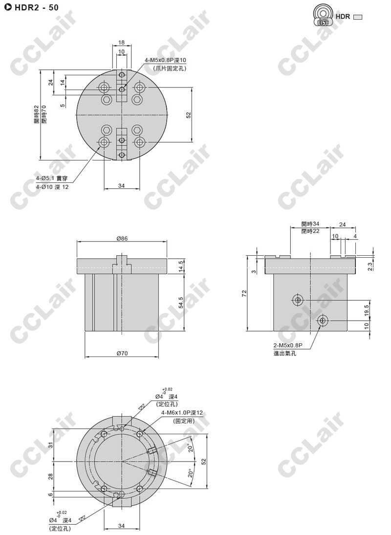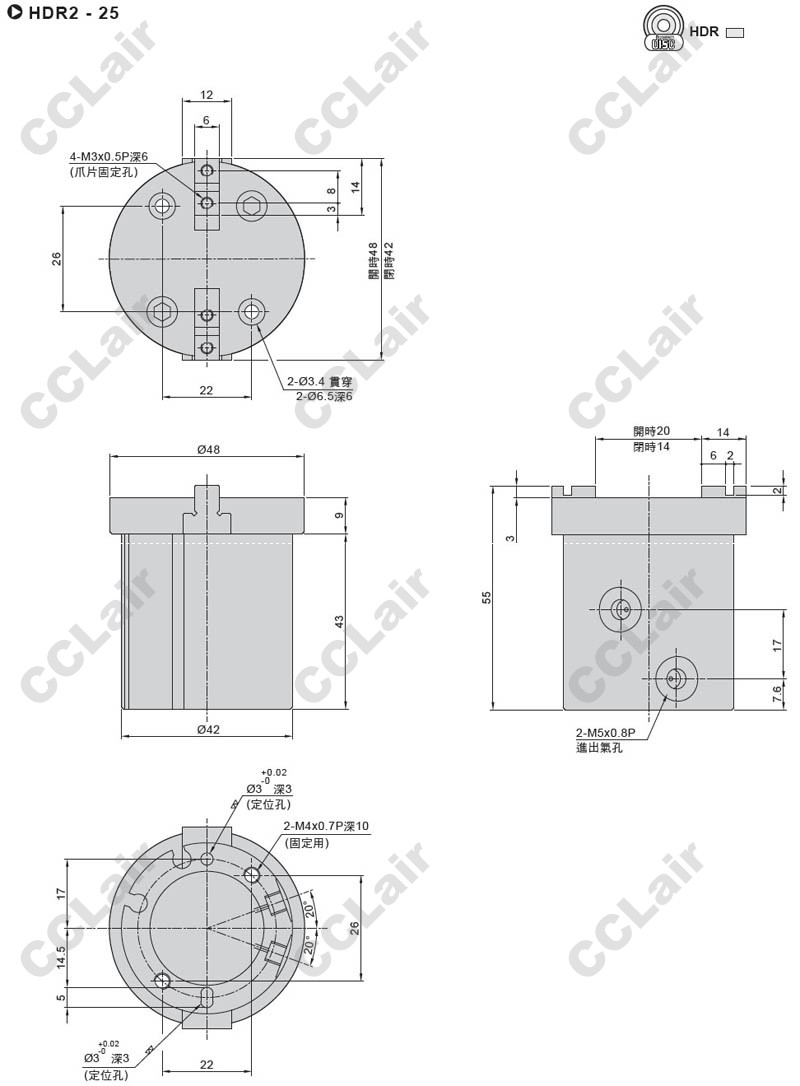 氣立可(chelic),HDR2-25-SD2,HDR2-32,HDR2-40,HDR2-50,HDR2-63,HDR225-SD2,HDR232-SD2,二爪機(jī)械夾