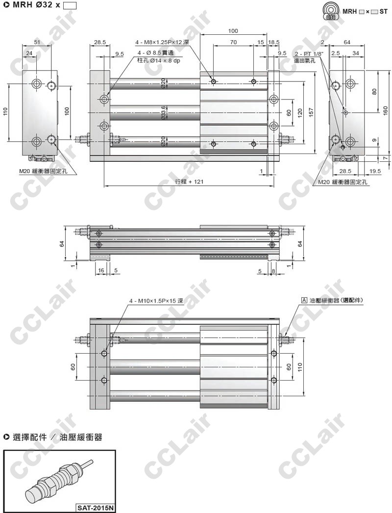 氣立可(chelic),MRH15*100,MRH20*250,MRH25*300,MRH32*350,MRH15X200,MRH32X300,磁偶式無桿氣缸