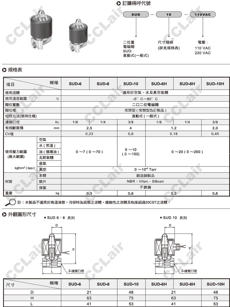 詳細(xì)信息 氣立可(chelic),SUD-10,SUD-6H,SUD-8H,SUD-10H,SUD-6-110VAC,SUD-8-220VAC,電磁閥