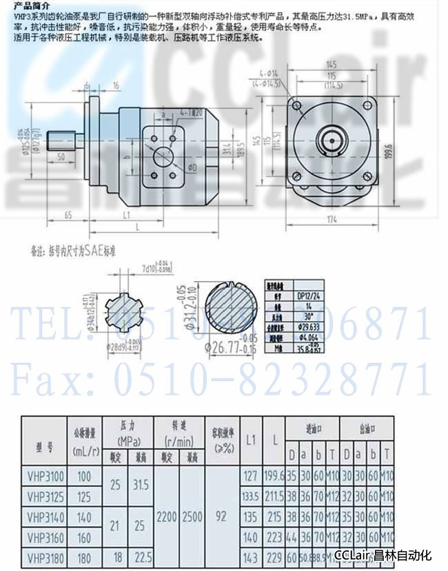» VHP3100,VHP3125,VHP3140,VHP3160,VHP3180,齒輪油泵