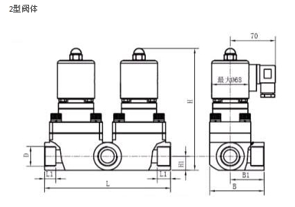 □常閉式---當(dāng)電磁閥線圈通電時(shí),2通向1,1與3關(guān)閉。