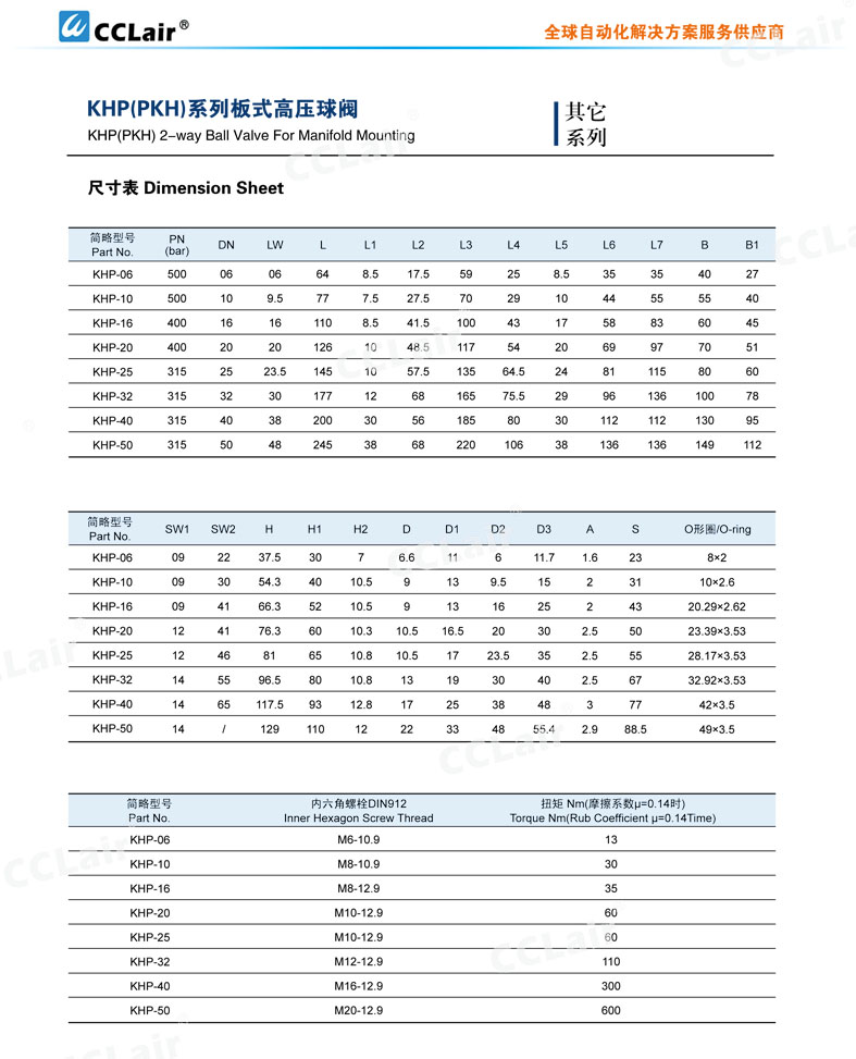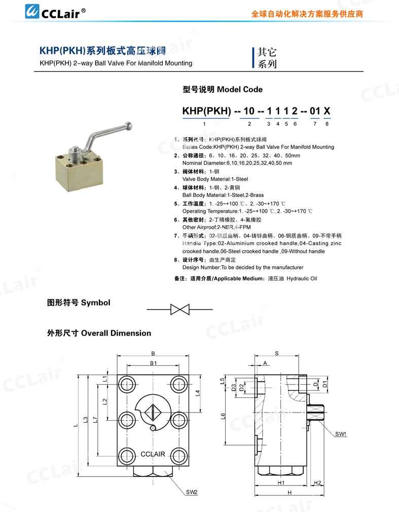 KHP-06,KHP-10,KHP-16,KHP-20,KHP-25,KHP-32,KHP-40,KHP-50,板式高壓球閥