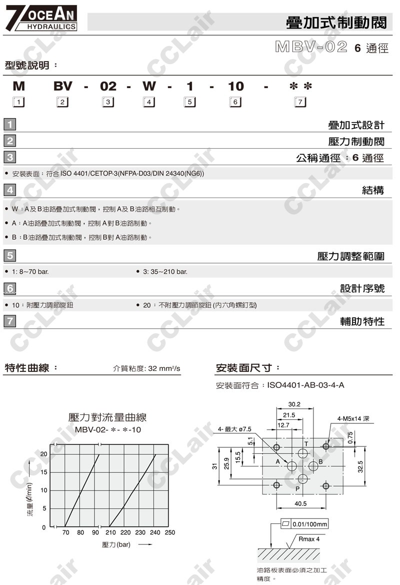 詳細(xì)信息 MBV-02-W,MBV-02-A,MBV-02-B,MBV-02-W-1-10,MBV-02-A-1-20,MBV-02-B-3-20,7OCEAN七洋疊加式壓力制動(dòng)閥